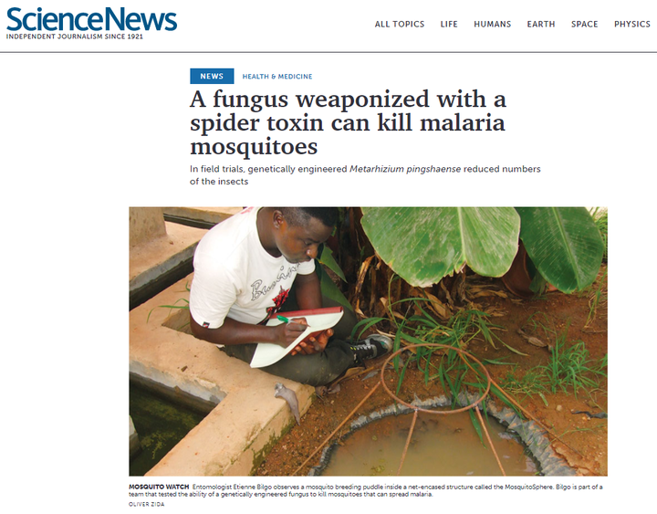 A fungus weaponized with a spider toxin can kill malaria mosquitoesLast updated on Nov 20, 2020Go to Project Sitecomments media interviewNsa Dada, PhDFounder and LeadMosquito Microbiome ConsortiumEntomologist and microbial ecologist fascinated with microbial interactions that underpin insect evolutionary responses to changes in their habitats.